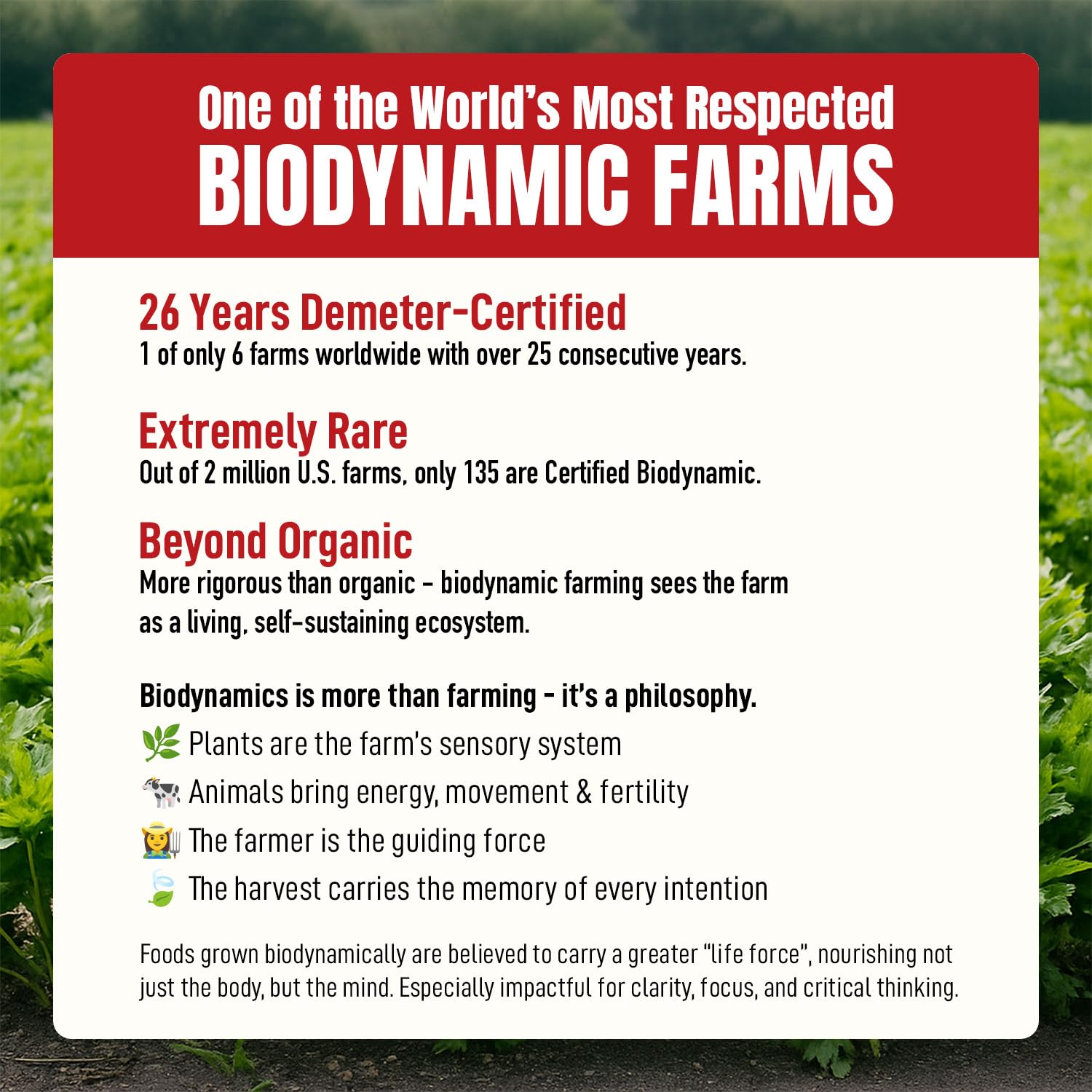 - US-GROWN ORGANIC ASHITABA HERBS: Our Ashitaba is grown on a small family farm in the United States, biodynamically grown, and Demeter-certified. This means that our healthy tea contains Ashitaba which is high-quality and sustainably grown.