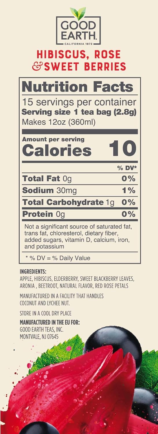 | Flavor | Hibiscus, Rose & Sweet Berries Herbal Tea |
