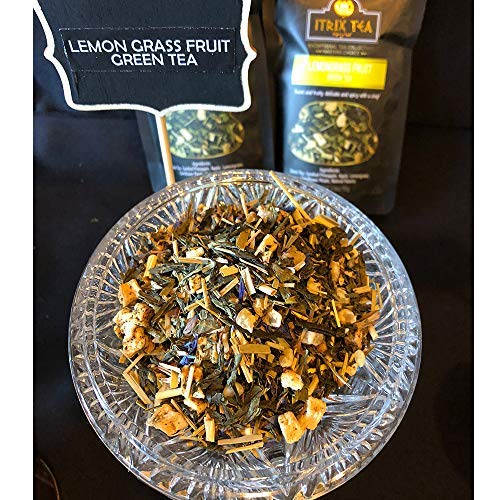 Itrix Lemongrass Fruit Loose Leaves Tea Infused with 100% Natural & Vegan Flavors like Candied Apple Cornflower Petals Organic Green Tea for Healthy Diet 2 oz