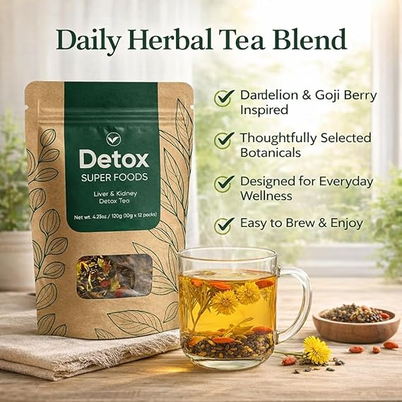 - [Natural Herbal Blend for Daily Wellness] Crafted with a balanced combination of dandelion root, goji berry, cassia seed, orange peel, chrysanthemum, and gardenia. A comforting herbal tea to support your everyday wellness routine.