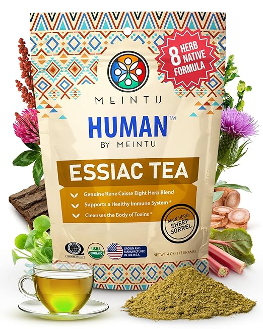 - ESSIAC from the USA! Essiac 8 Herb Tea Blend: Our organic essiac tea powder is made from a famous American Indian recipe that strengthens your immune system. This organic tea has 8 natural herbs which are available in 4oz bags. Our essiac formula herbal tea is certified organic, gluten-free, NO artificial flavors or preservatives & made in the U.S.A.!