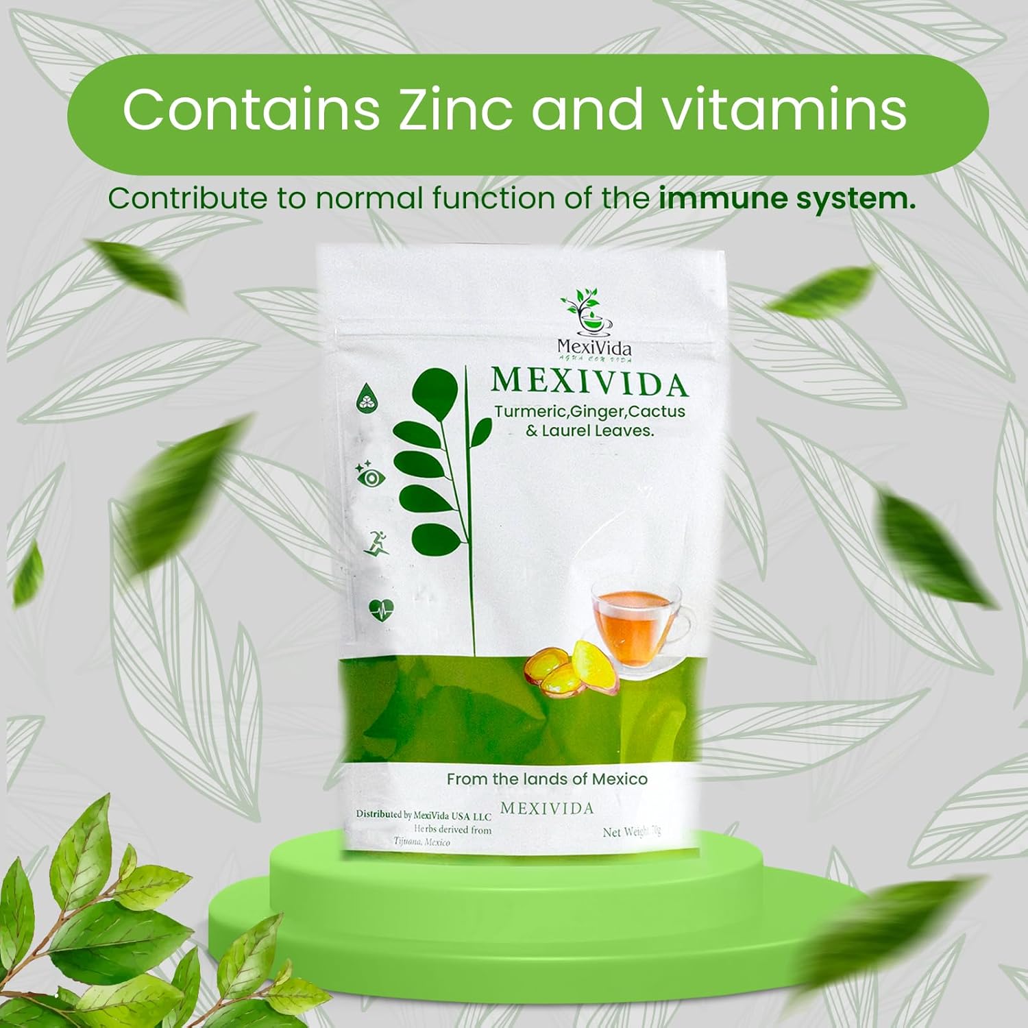 MexiVida Herbal Tea Supports Blood Pressure & Sugar Balance All Natural Ginger Turmeric Tea Pack of 1