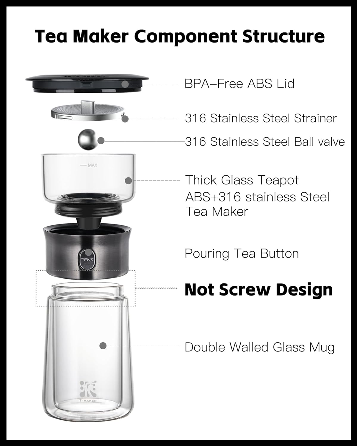 - Built-In Infuser for Loose Leaf Perfection: Brewing quality tea requires quality supplies, and making the perfect cup of Kung Fu tea is a snap with the Zens 3-in-1 tea maker. the built in 316 stainless steel tea strainers is crafted with 1600 micro holes, ensuring every sip is perfection without any tea dregs. just pour and enjoy.
